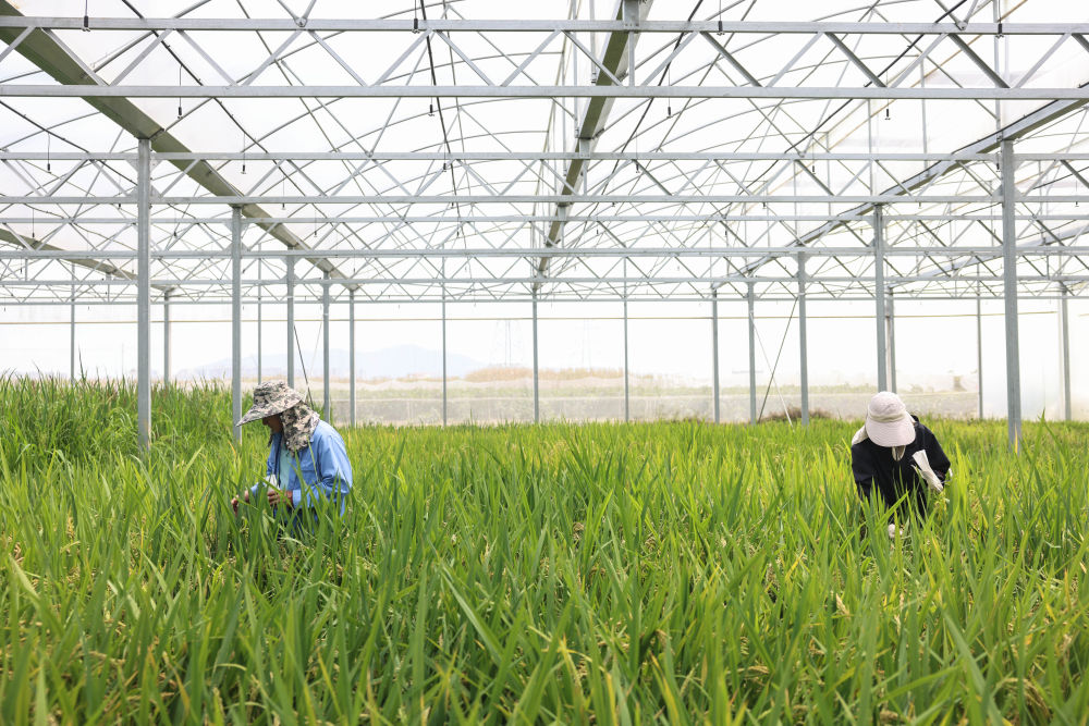 2025年3月21日,工作人员在海南三亚国家南繁科研育种基地收种。