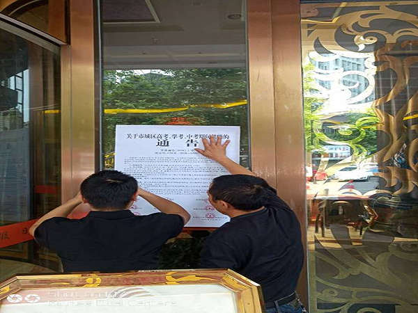 二、向辖区内各营业性文化娱乐场所下发《关于高考、学考、中考期间禁噪的通告》。要求营业性文化娱乐场所边界噪声不得超过国家规定标准;凡超过国家噪声标准的,必须停止营业。虽达到国家标准、但对学生学习、休息、考试有干扰的,在高考、中考期间停止营业。