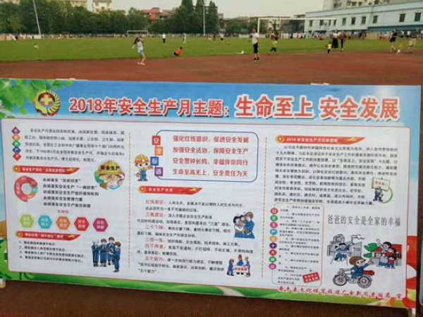 今年6月是全国第十七个安全生产月,各单位着眼“生命至上、安全发展”这一主题,将宣传咨询活动举办地点选在人流量集中的体育场,进一步扩大安全生产的宣传教育面,使“安全发展”的理念进入每个居民家中。此次集中宣传活动共设立宣传展板10余块,发放安全生产宣传资料万余份。