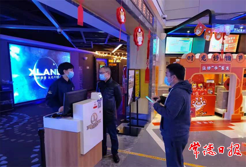“请把常态化疫情防控登记信息拿出来看一下。”“记得提醒顾客戴好口罩,保持‘一米线’安全社交距离。”“要注意安全,公共场所不要用电烤炉哦。”“春节期间产品质量和服务要不能打折扣。”针对假日特点,每天由1名支队领导带领2名执法人员坚守一线,以网吧、KTV、影院等人员密集型场所为重点开展节庆市场巡查,重点排查互联网上网服务场所违规接纳未成年人、未按规定核对有效身份证件,检查歌舞娱乐场所无证经营、含有禁止内容的曲目等行为,不厌其烦地叮嘱提醒经营户在守法经营的同时,做好疫情防控和安全生产工作。
