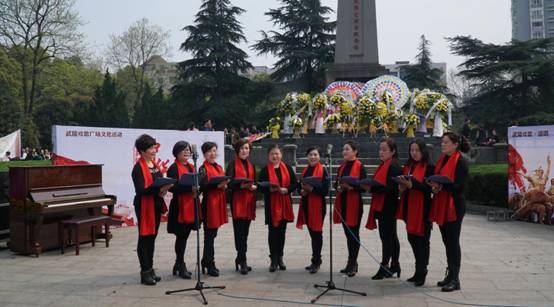 为缅怀革命先烈,不忘历史,大力弘扬我国优秀传统文化, 4月1日上午十点,由常德市委宣传部、常德市文体广新局主办,常德市文化馆承办,金秋合唱团、呱呱声乐艺术学校协办的“缅怀先烈志·共铸中华魂”“我们的节日·清明”纪念活动在陆军第74军常德会战阵亡将士纪念坊举行。