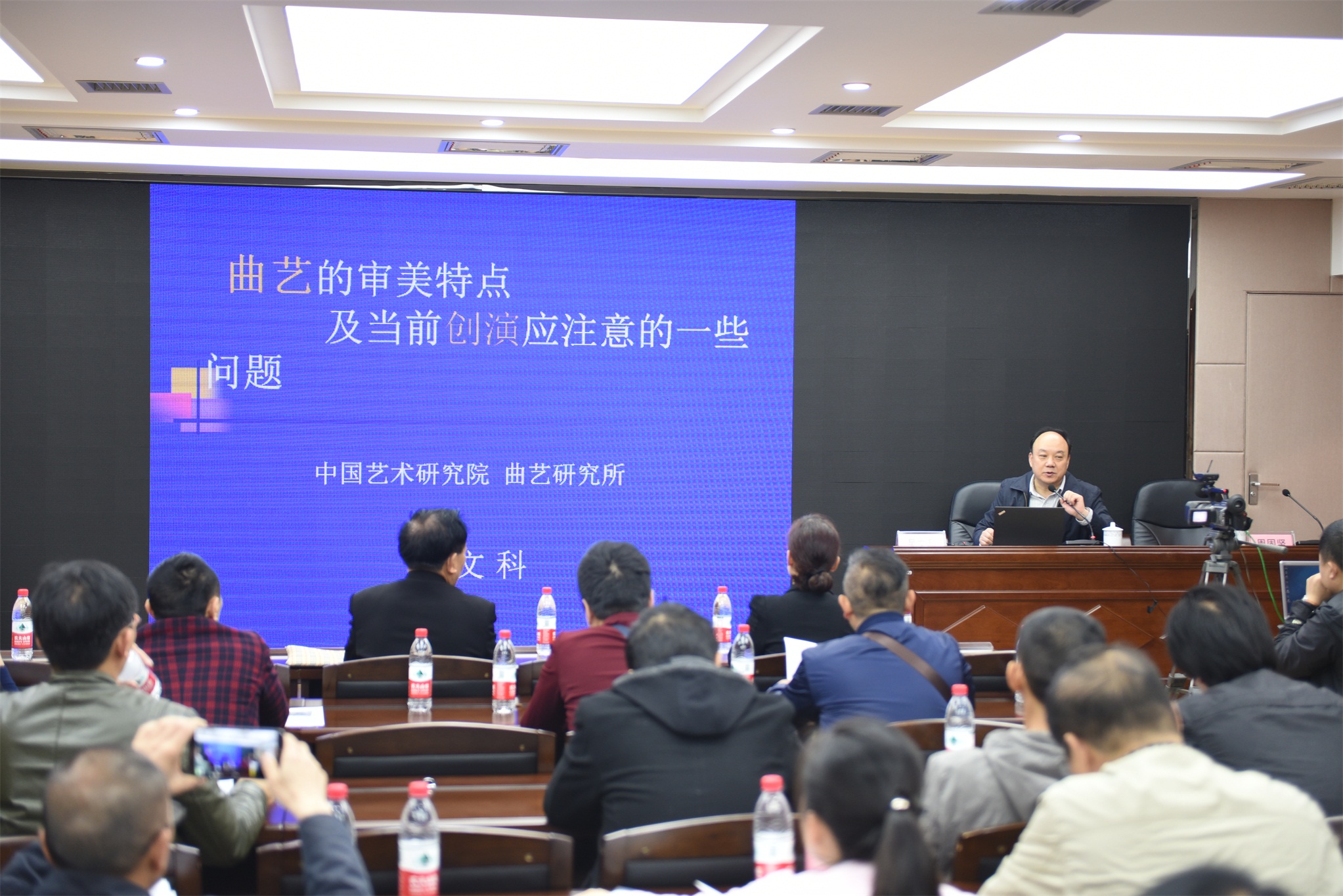 本次培训班于4月21日开始,4月24日结束。4月22日上午,由湖南省文化馆副馆长周固坚主持,中国艺术研究院曲艺研究所所长、博士生导师吴文科授课,为学员们进行了题为《曲艺的审美特点及当前创演应注意的一些问题》的精彩讲解。吴文科所长强调曲艺创作者要充分树立理论自觉,要明确曲艺是演员以本色身份采用口头语言说唱的叙述的表演艺术。授课过程中,吴文科所长肌劈理解,让学员受益匪浅。
