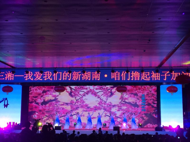 4月25日晚,由省文联、省总工会主办,省文艺志愿者协会、省职工文体协会等7家省级协会共同承办的“笑满三湘------我爱我们的新湖南·咱撸起袖子加油干”专场演出暨“2017工人阶级宣传月”启动仪式在蓝思科技榔梨工业园圆满闭幕。武陵区艺术团受邀参加闭幕式演出,送欢笑进工业园。