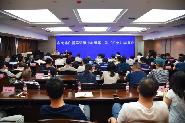 近日,市文体广新局召开局党组中心组第二次(扩大)学习会。会议由局党组书记、局长王鳌主持,局党组成员、副处级以上领导干部、二层单位班子成员、局机关各科室负责人参加学习。