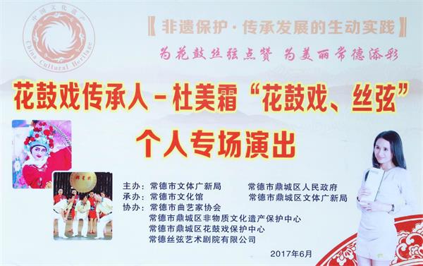 杜美霜系国家二级演员,国家级非物质文化遗产常德花鼓戏省级传承人、常德市曲艺家协会副主席。
