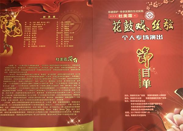 中国电影家协会副主席康健民发来贺信:杜美霜个人专场演出,无疑是常德文艺界一个值得欢欣鼓舞的盛大节日。常德花鼓戏和常德丝弦,是中国文艺百花园里两朵备受人喜爱的鲜花,她植根于人民中间,在继承中创新,创作了大量的好作品,也推出了不少新人才。作为常德花鼓戏传承人的杜美霜,有良好的天赋,也凭着不懈的努力,在这两个领域里取得了骄人的成绩。作为家乡人,我对常德文化艺术的创新精神表示钦佩,对杜美霜等一批中青年艺术家的成就感到骄傲,我更热切地盼望着家乡的社会、文化事业有更好、更快的发展。
