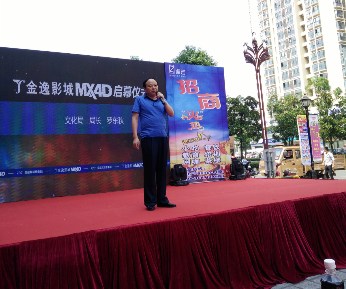 罗东秋副局长代表市文体广新局参加了启幕仪式,对金逸影城常德泽云店及全市城市影院提出了新的期望,希望大家抓住《中华人民共和国电影产业促进法》颁布实施这一有利于电影事业发展的大好时机,积极进取,勇于创新,努力探索适合我市实际的影院发展管理、运营、放映和营销模式,以一流的经营理念和服务质量赢得市场、赢得观众,打造我市文化产业靓丽的服务品牌。