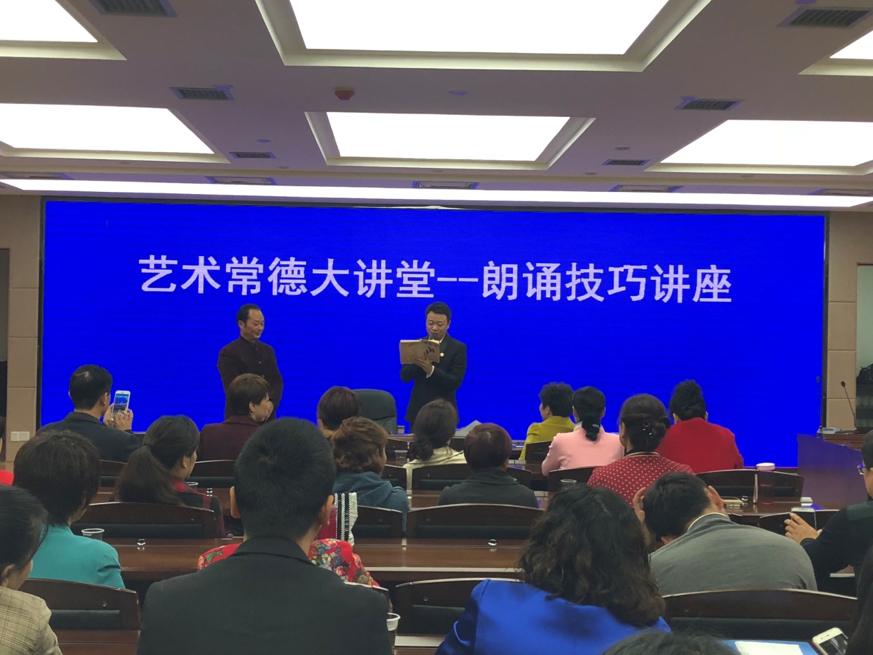 为喜迎党的十九大胜利召开,进一步提高广大朗诵爱好者的朗诵技巧和朗诵水平,促进常德市语言艺术的蓬勃发展,在全市营造良好的群众文化氛围,10月14号下午,艺术常德大讲堂邀请我市朗诵演讲协会主席、国家二级演员、资深导演、著名主持人李卫平老师就吐字发音、朗诵技巧等进行了专业讲座,并与在场的近百名朗诵爱好者进行了互动,共同探讨语言的魅力。