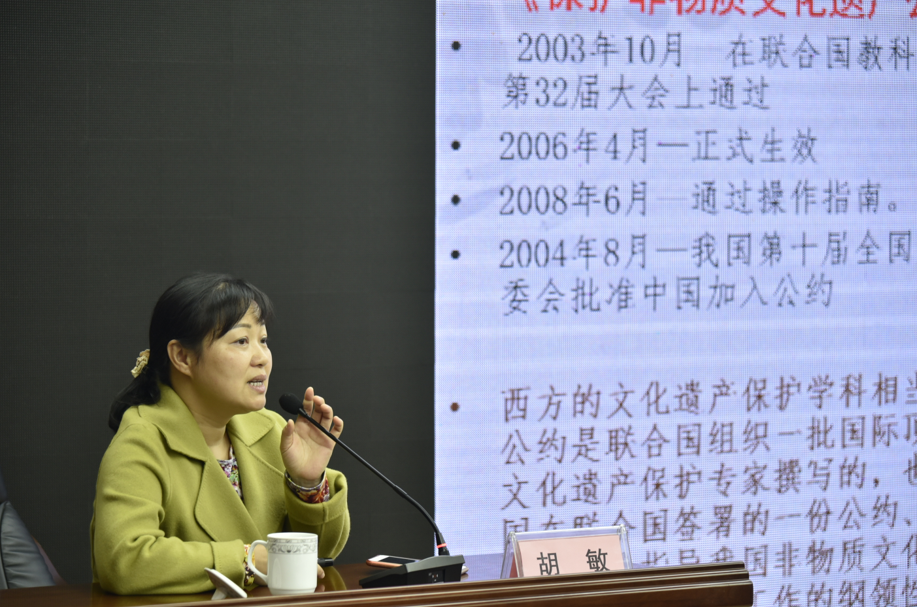 10月30日,常德市非物质文化遗产保护工作管理人员培训班在市文化馆举行,各区县市分管副局长、非遗保护中心主任、非遗专干以及市直相关单位从事非遗工作的管理人员共37人参加了培训。