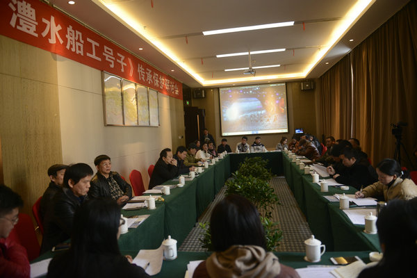 会上与会人员回顾了澧水船工号子的历史沿革及发展史,总结了其艺术特点,汇报了近年来的工作成绩。但因为传承环境的消失,“澧水船工号子”失去了生存土壤,目前面临失传危险。大家纷纷指出项目保护工作中存在宣传范围及力度不够、原始资料挖掘不深、数据库资料不多等不足,并针对存在问题提出了各种好的建议。