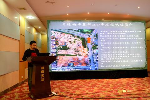 我局王永彪、隆朝晖及佘涛三位同志参加了本次汇报会,其中佘涛同志在大会上汇报了常德南坪墓群2017年考古发掘情况。2017年,常德市文物局、常德博物馆在南坪墓群共清理了现地表可明显辨明的独立土堆12座,发掘的墓葬时代跨度从汉代、唐宋延续至明清,主要以汉代的土墩竖穴墓和砖室墓为主,也有少量的唐代砖室墓、宋代石椁墓、土坑竖穴墓以及明清时期的土坑竖穴墓,出土有金、银、铜、玉、陶、滑石、青瓷器等各时期文物近700件(套)。