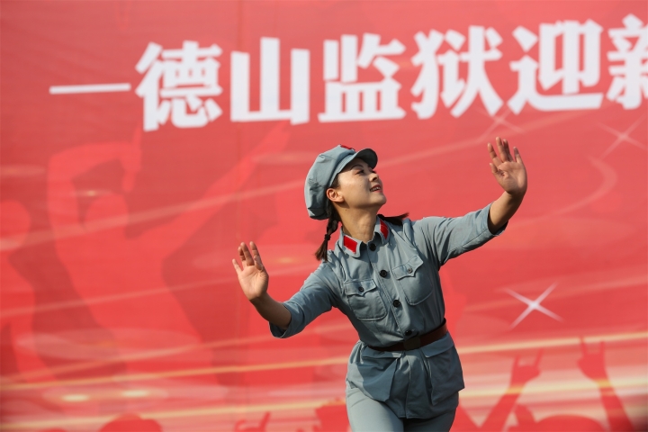 之后演员开始表演精彩的节目,没有炫美的灯光,没有华丽的舞台。但就是这样的条件,现场的服刑人员都在聚精会神地观看。