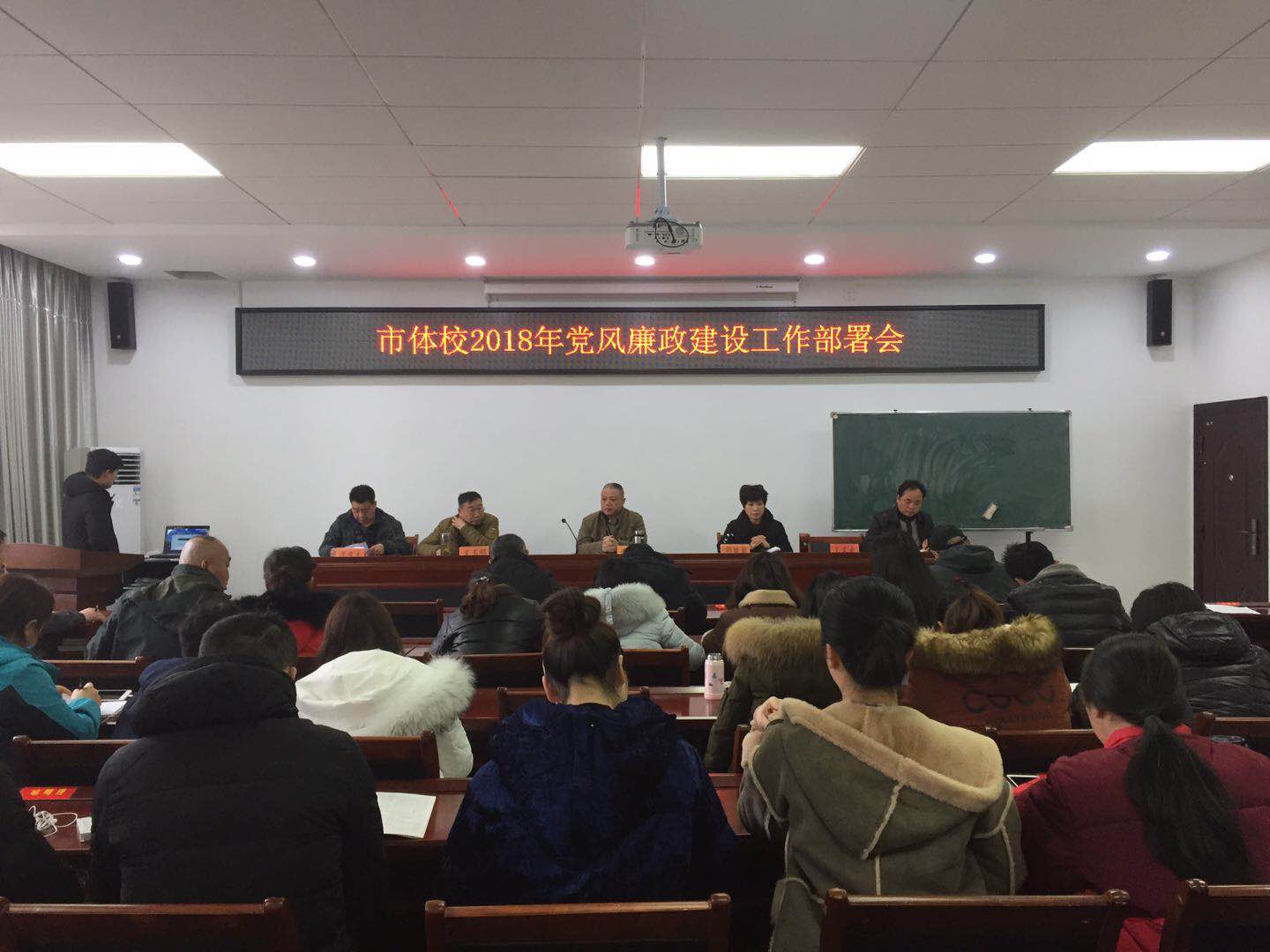 2018年3月7日上午9点,市体校在学校会议室召开全体教职工大会,专题部署2018年党风廉政建设工作。