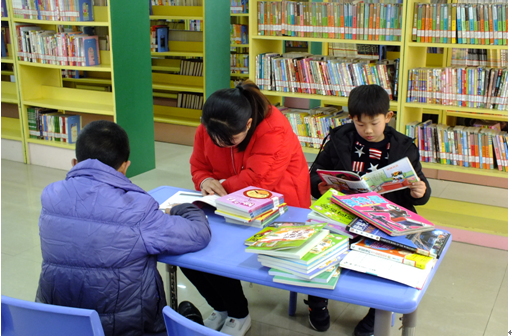 在少儿新书阅读现场,有许多中小学生在挑选到自己喜爱的图书后,直接到外借服务窗口办理图书外借手续,带回家好好品味,而低幼儿童则在大人们的指导下,一边听着大人的解释,一边像模像样地阅读图书,大家都沉浸在吸取文化知识的大餐里。
