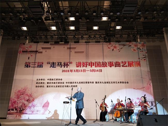“青山不老依旧在,三国演义千古情”,3月14日下午,一曲鼓盆歌在重庆九龙坡区走马镇唱响,这是石门县鼓书艺人向思军表演的鼓盆歌《斗智》正在参加第三届“走马杯”讲好中国故事曲艺展演活动现场,此次活动是为继承发展故事讲演文化,创新繁荣中华曲艺艺术,由中国曲艺家协会主办,重庆市曲协、九龙坡区委宣传部、九龙坡文学艺术联合会承办、九龙坡区走马镇人民政府协办。
