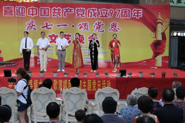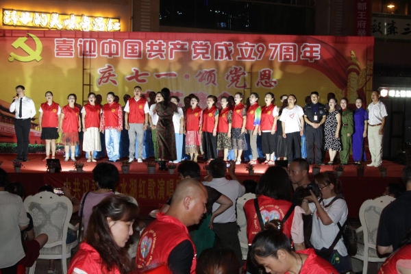 为进一步深入学习贯彻习近平新时代中国特色社会主义思想和党的十九大精神,加强党员队伍建设,发挥党员的先锋模范作用,6月28日晚7点,喜迎中国共产党成立97周年“庆七一·颂党恩”文艺晚会在今都王府广场举行。