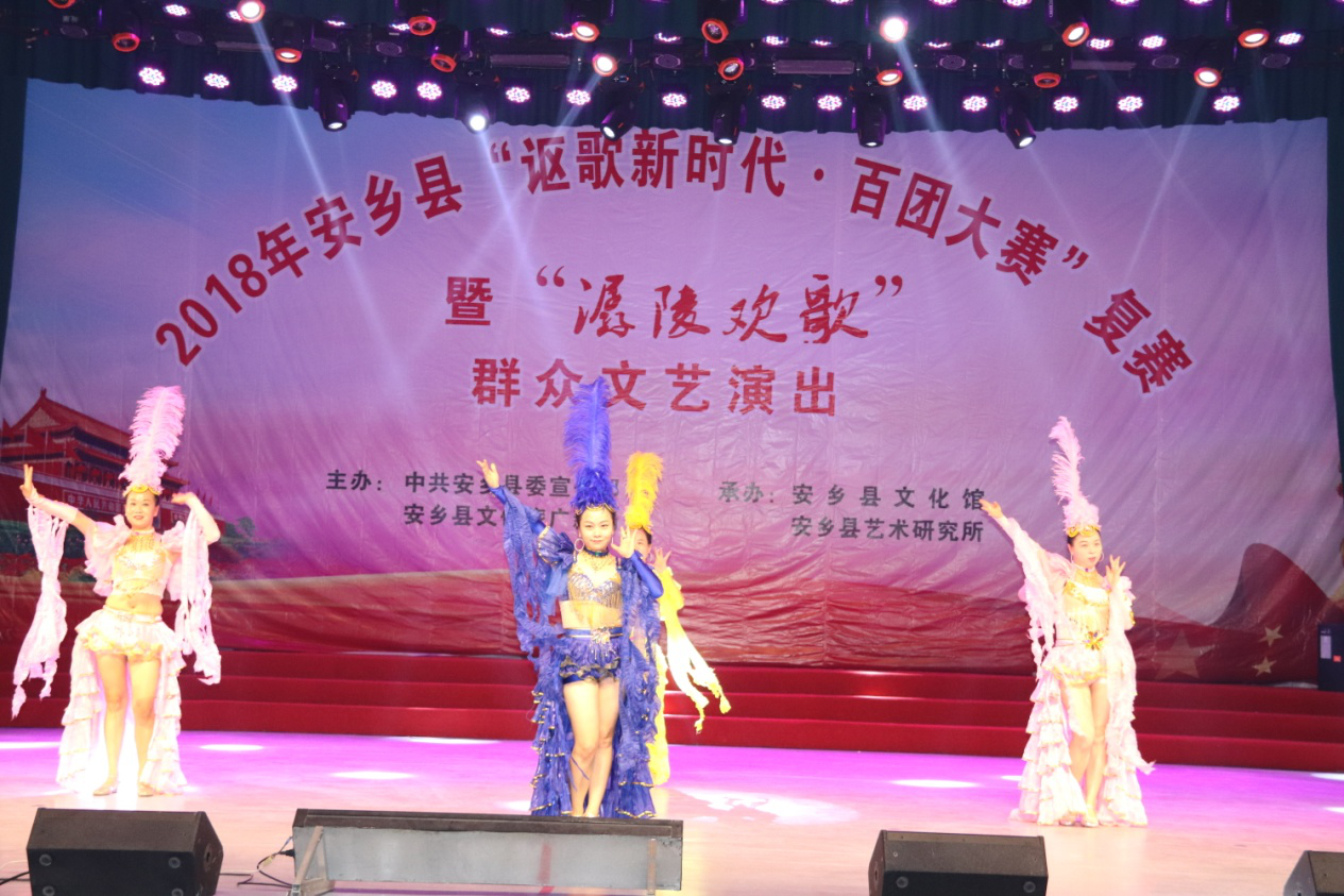 7月30日,2018年常德市“讴歌新时代”群众文艺演出百团大赛(复赛)安乡县选拔赛在开赛。参赛作品以“讴歌新时代”为主题,以宣传贯彻习近平新时代中国特色社会主义思想及党的十九大精神、庆祝改革开放四十周年、反映“开放强市、产业立市”最新成果等为主要内容。