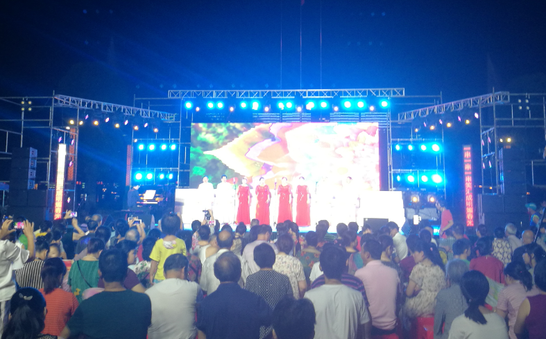 8月8日晚7:00,白马湖广场上人声鼎沸,热闹非凡,“讴歌新时代”常德市百团大赛决赛第三场在白马湖畔隆重举行。武陵区的参赛团队有9号团队常德市群星话剧团和11号团队常德市金秋艺术团合唱分团。