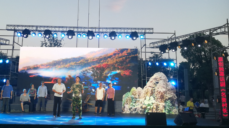 首先上场的是常德市群星话剧团的演员们,他们带来了独幕话剧《名誉村长》,该节目是根据全国道德模范王新法不远千里来到湖南石门南北镇薛家村扶贫的真实故事改编,再现了一个老共产党员的人民情怀,深深的感动了场上的评委和观众们,现场掌声不断。