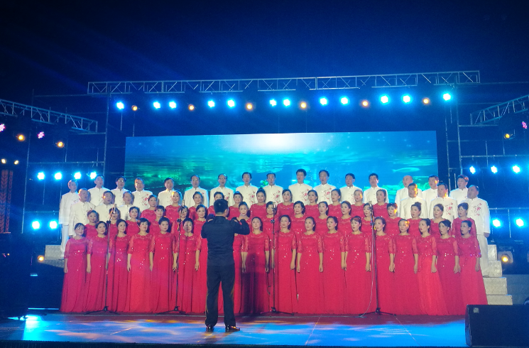 常德市金秋艺术团合唱分团以大气蓬勃的歌舞《领航新时代吧》将观众们情绪带入高潮,愉快活泼的男声小组唱《森林水车》、甜蜜的混声合唱《幸福合唱》接连上演,最后大合唱《大鱼》、《把一切献给党》堪比专业院团,得到现场观众的一致好评。