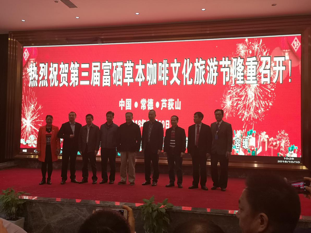 10月10日,由中国农业国际合作促进会功能农产品委员会、湖南省富硒生物产业协会、武陵区人民政府主办;武陵区文体局、芦荻山乡人民政府、常德中旺农业股份有限公司承办的第三届中国富硒草本咖啡文化旅游节在武陵区芦荻山乡举办了开幕仪式。