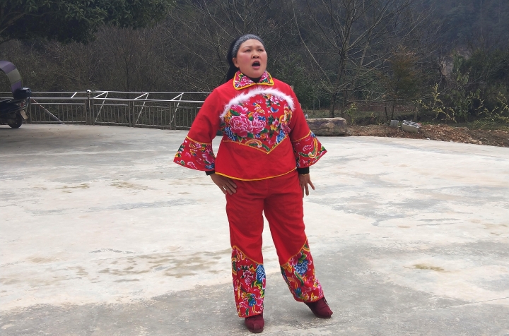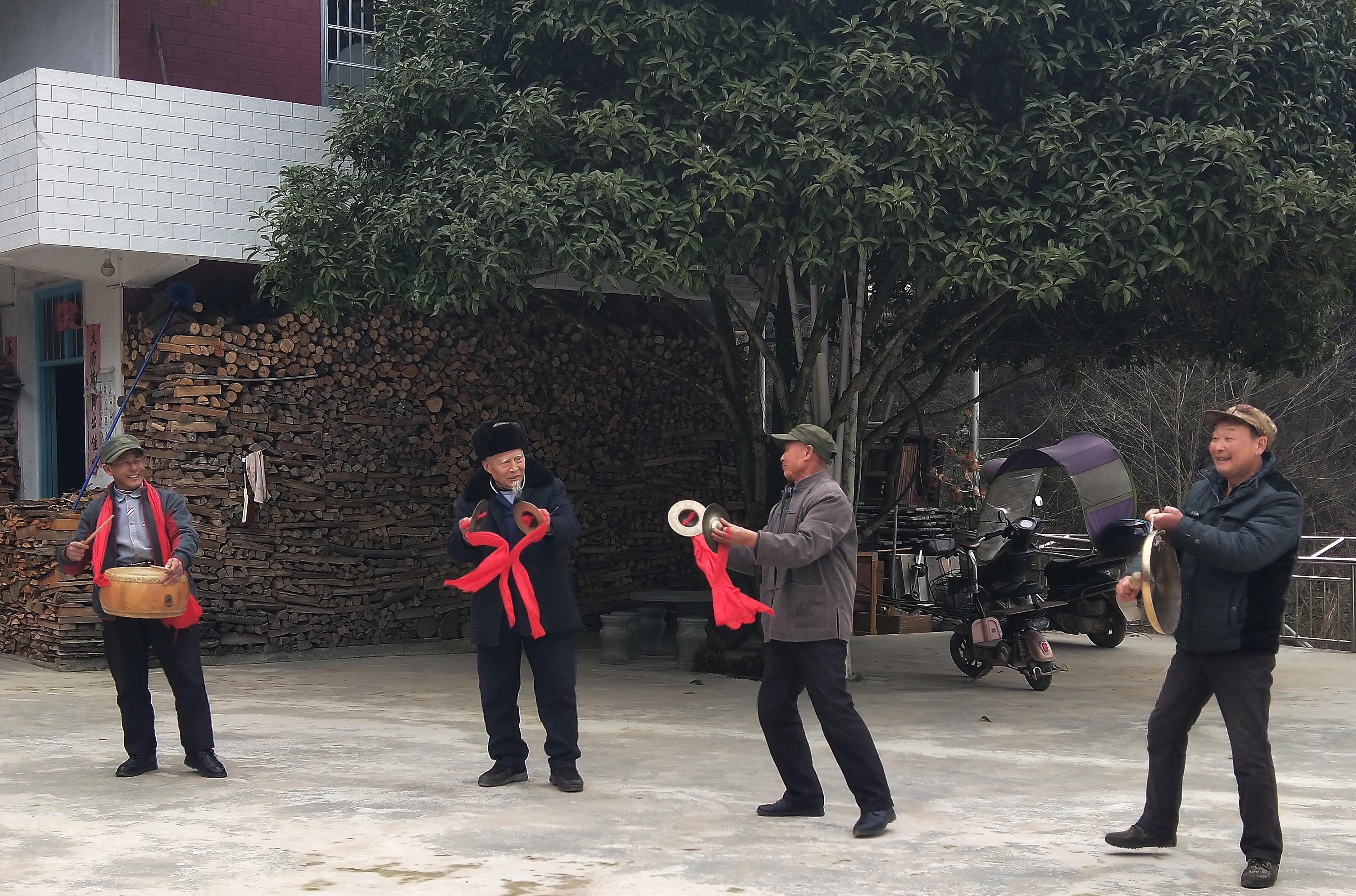 老百姓表演民俗节目《薅草锣鼓》