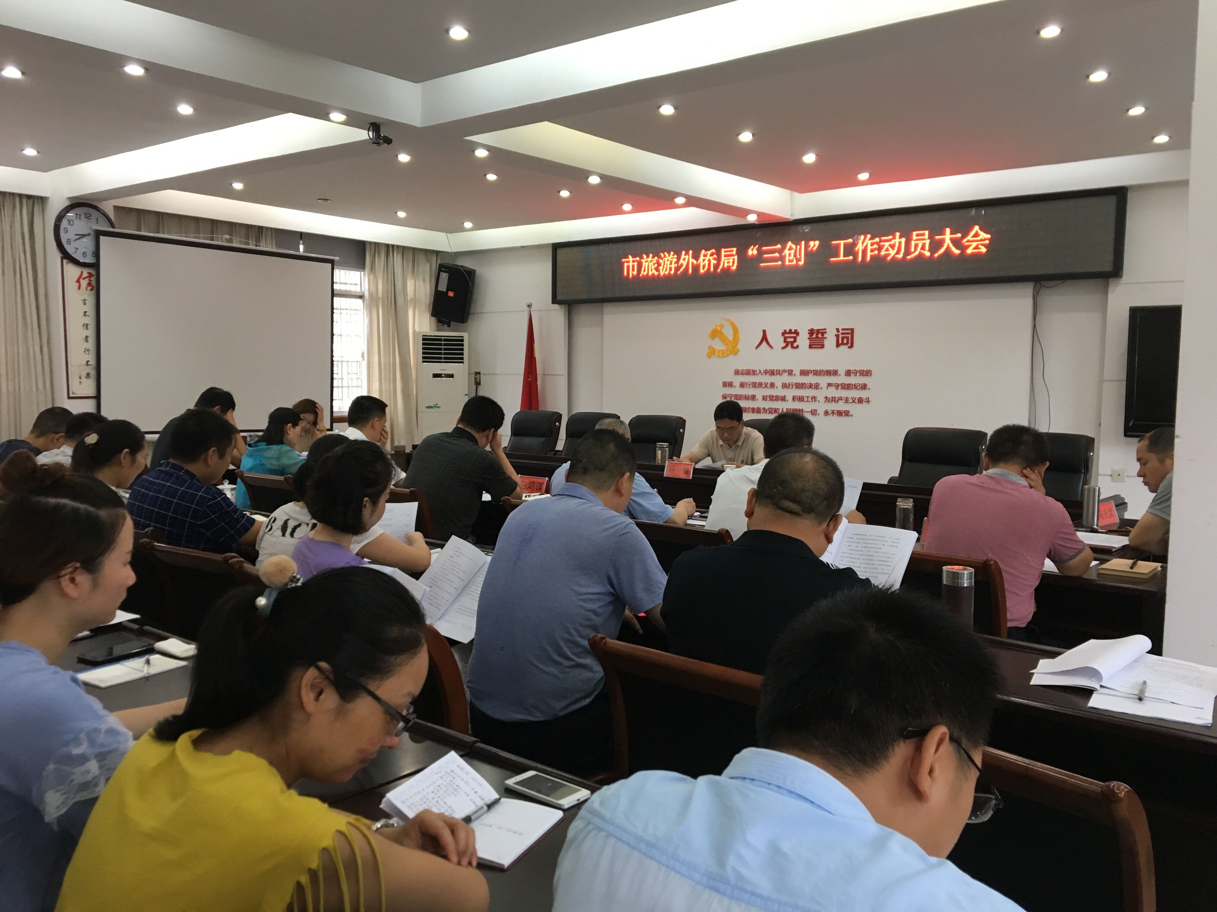 7月9日,市旅游外侨局召开“三创”工作动员会,会议由党组书记、局长杨俊主持,全体干部职工参加。