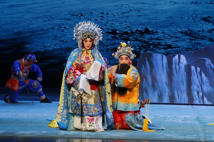 “念”——《金沙滩·饯行》中有一段长达200多句的韵白,对演员的唱功是极大的考验,主演袁金霞凭借其悠长的气息、巧妙的换气、和对节奏的准确把握,“妙语”连珠,一气呵成,行云流水的念白赢得满堂喝彩。