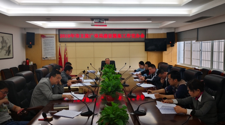 5月17日上午,市文旅广体局召开2019年建议提案办理工作交办会议,专题讨论研究市政府交办的市七届人大三次会议、市政协七届三次会议关于文旅广体工作的建议和提案办理。会议由市文旅广体局党组成员、副局长王陵书同志主持,局机关科室负责人参加会议。
