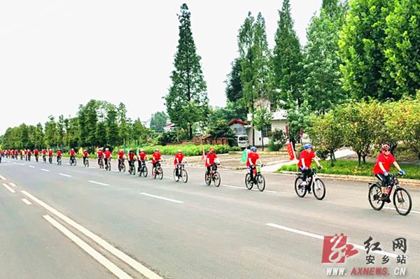 盛夏时节,荷冠群芳之际,中国·安乡第四届荷花节即将拉开帷幕。为助力荷花节和全民健身运动会开幕、营造浓厚宣传氛围,7月12日,安乡县全民健身运动中心主任陈诚与捷安特骑行俱乐部58名骑友一道,身着红色文化衫,在车尾插红、黄彩旗,沿县城区及乡村主要道路骑行,开展以“梦里仙桃,洞庭荷乡”为主题的游骑宣传活动。
