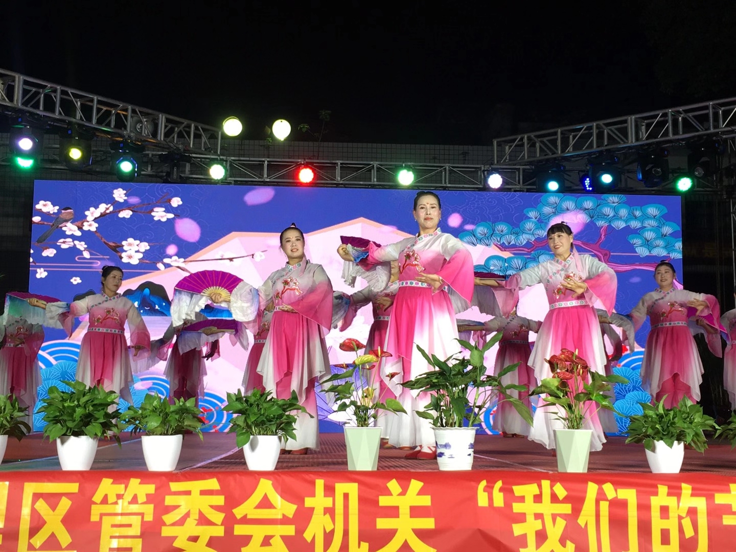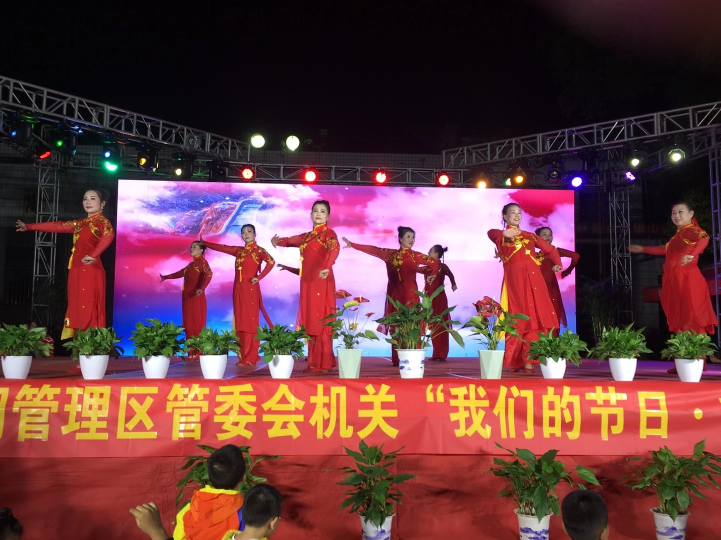 活动于当晚7时许,在区工会灯光球场隆重举行,伴随着悠扬的音乐,开场舞《书简舞.唱脸谱》为拉开演出帷幕,紧接着曳步舞《中国战场》、合唱《夕阳红》、民族舞《再唱洪湖水》……一个个精彩纷呈的节目轮番上演,演员们激情澎湃的演艺,表达了在党的领导下,祖国蓬勃向上,生生不息的活力,让观众眼前一亮,大家热烈欢呼、鼓掌叫好,将文艺汇演的气氛推向高潮,纷纷拿起手机摄影留念。