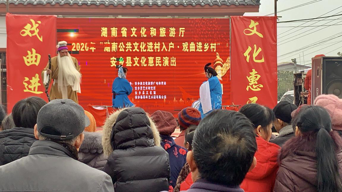 12月2日,安乡县文旅广体局文艺志愿者们来到安乡县下渔口镇大溶湖村,开展“戏曲进乡村”文化惠民演出活动。文艺小分队将大戏免费送到家门口,让基层群众不用出村口就能享受丰盛精神文化食粮。