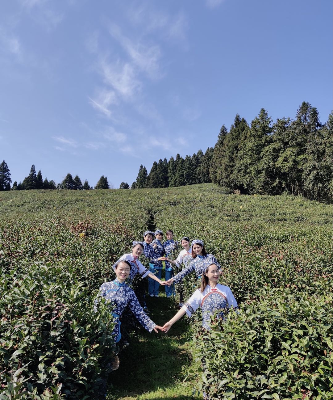 文旅志愿者们在茶园合影