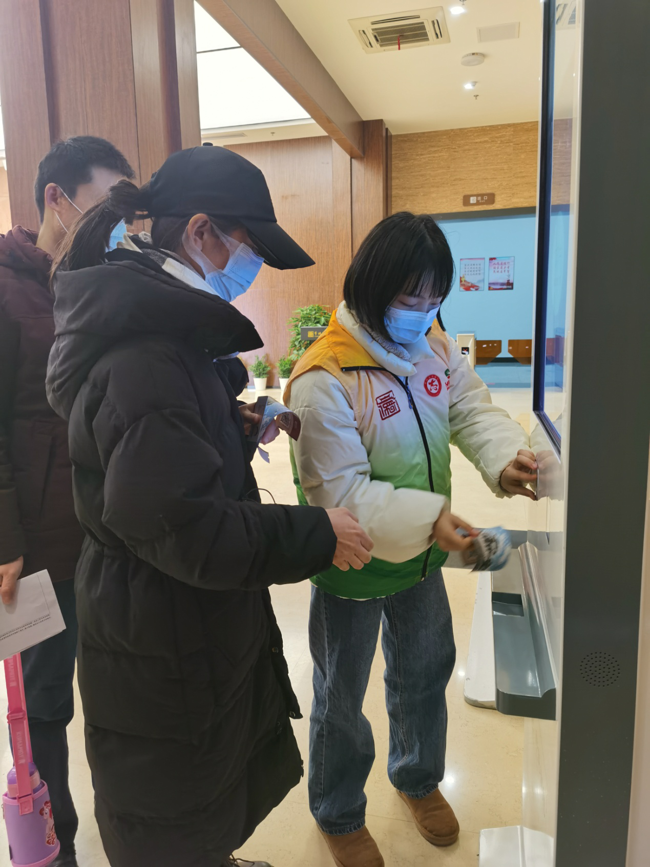 疫情常态化防控期间,志愿者帮助观众自助取票,进入场馆