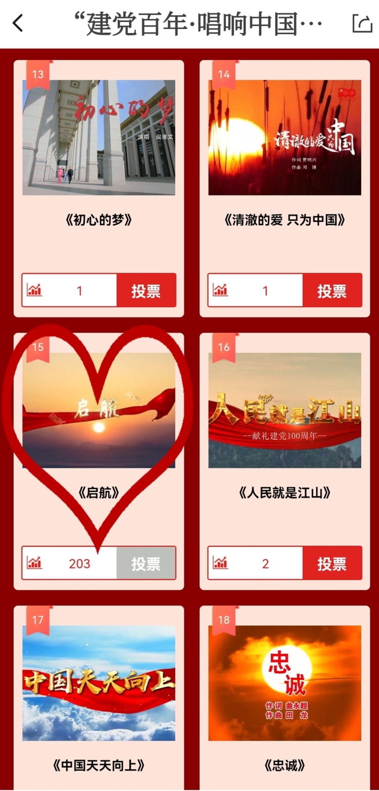 由新华社新媒体中心、中国音乐家协会主办的“‘建党百年•唱响中国’主题MV征集展示活动”已进入网络投票阶段,常德原创歌曲《启航》荣幸入选!