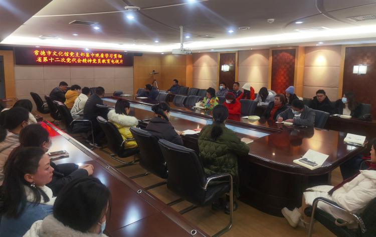 12月27日上午,常德市文化馆组织全体干部职工在四楼会议室集中观看教育电视片,深入学习省第十二次党代会精神,离退休党员通过“红星云”网上学习平台在家观看。会议由市文化馆党支部书记、副馆长周素芳主持。