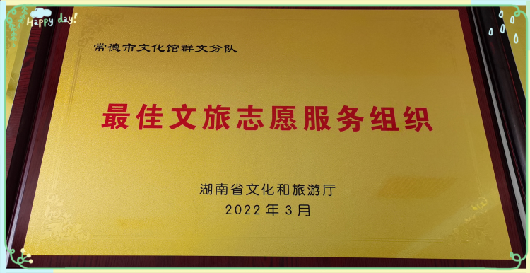 2022年5月12日,2021年湖南省文化和旅游志愿服务工作总结表彰大会在长沙召开,常德市文化馆群文分队被湖南省文化和旅游厅评为“最佳文旅志愿服务组织”。