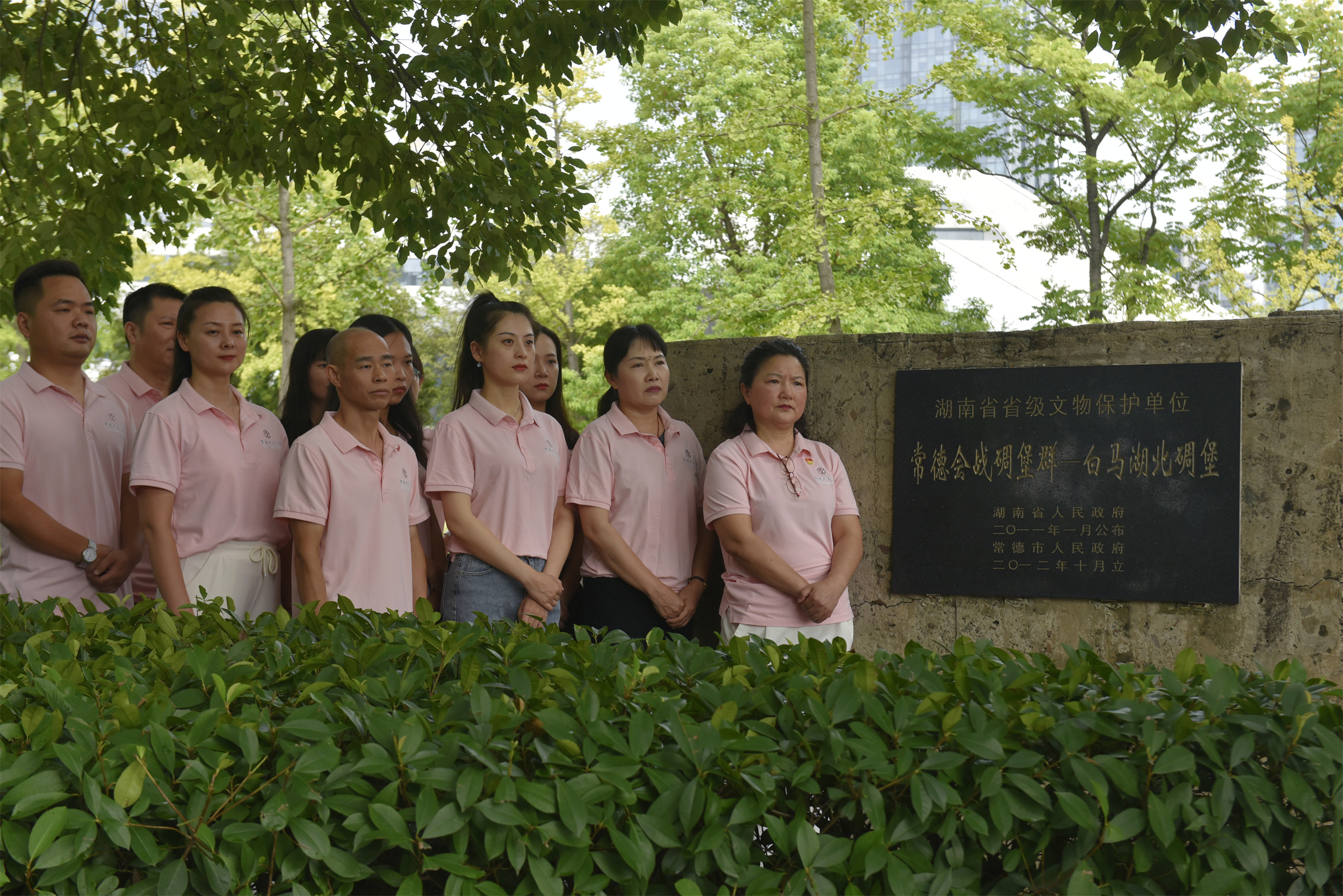活动中,常德市文化馆副馆长李子领学了常德会战和白马湖北抗战碉堡的沉重历史,在庄严肃穆的碉堡旁,大家或低头沉思,或热泪盈眶,或慷慨激昂,穿越历史长河,铭记抗日烽火,感悟先辈们保卫祖国、临难不屈的爱国情怀,英勇斗争、不畏牺牲的精神力量。