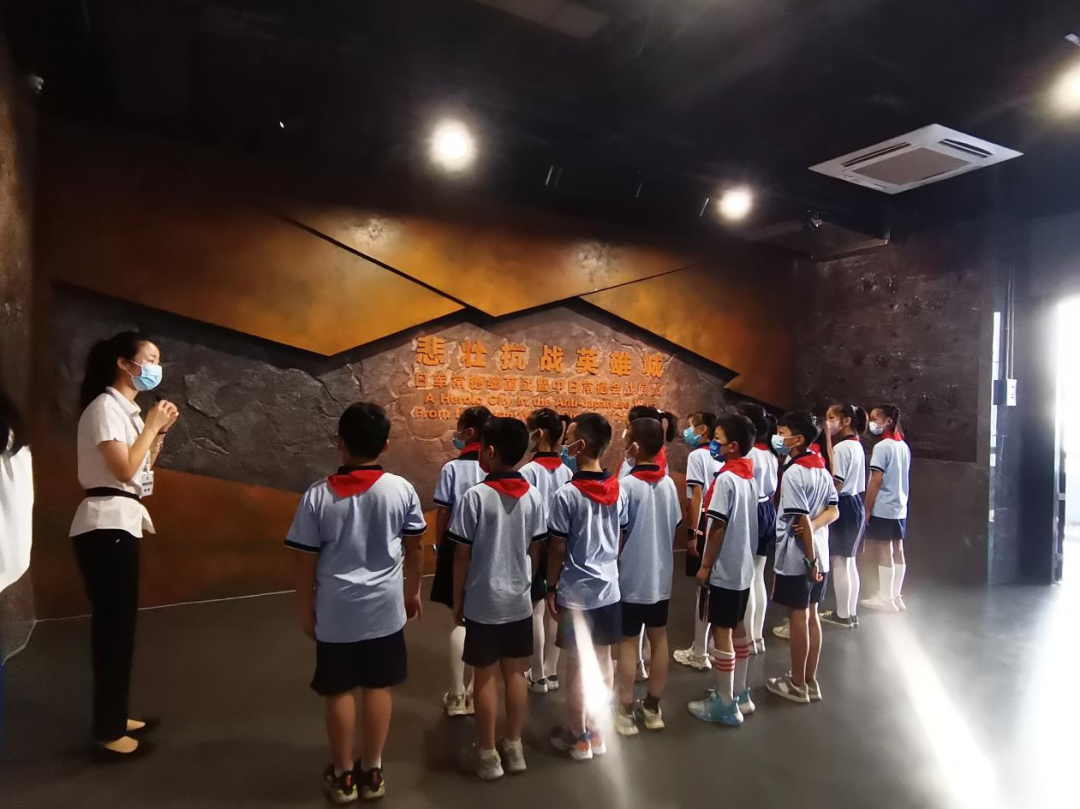 “国民革命军74军57师将士英勇抗敌,常德警民积极协同守军作战,共同谱写了保卫常德的壮丽史诗。”学生们在讲解员的带领下参观《悲壮抗战英雄城》,了解常德会战的相关历史,并在展厅朗诵《祭天誓词》致敬英雄。