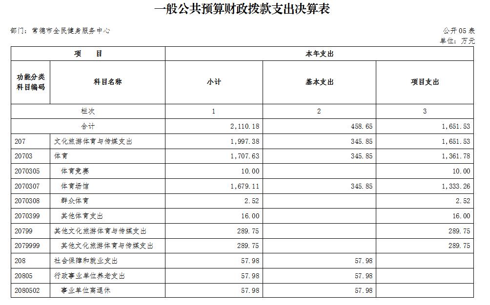 (二)决算单位构成。本单位2021年部门决算汇总公开单位构成包括:常德市全民健身服务中心本级,本单位无所属二、三级预算单位。