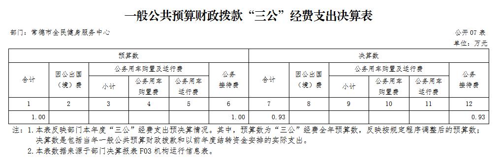 2021年度一般公共预算财政拨款“三公”经费支出预算为1万元,支出决算为0.93万元,完成预算的93%,其中: